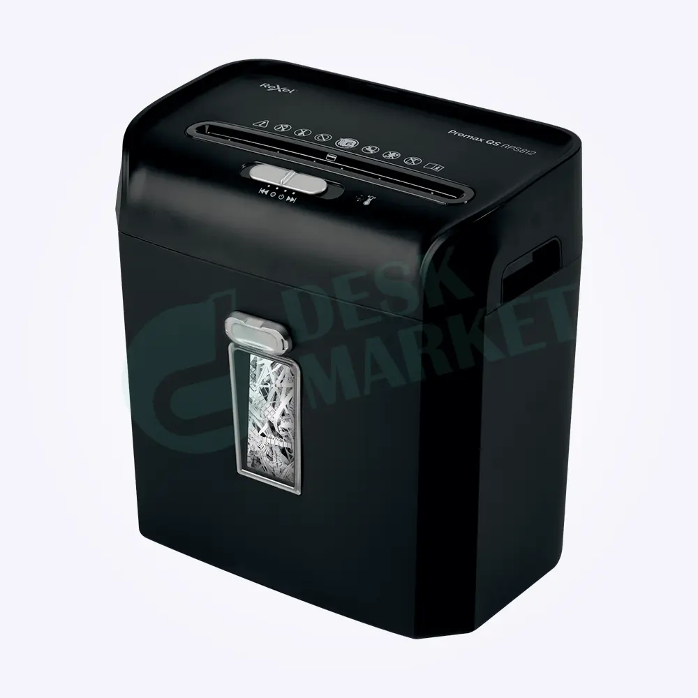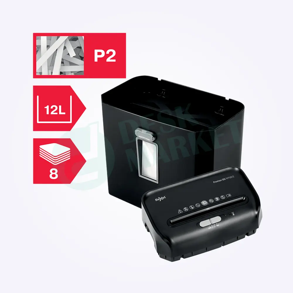 Le ProMax QS RPS812 détruit jusqu’à 8 feuilles à la fois (80 grs) en bandelettes de 6mm (DIN P2), avec une corbeille de 12 litres pouvant contenir 88 feuilles.